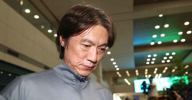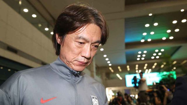 홍명보 대한민국 축구대표팀 감독이 인천국제공항을 통해 귀국, 인터뷰를 마치고 이동하고 있는 모습. / 뉴스1