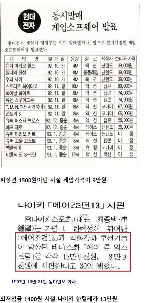 최저임금 900원~1400원 시절 사치품들..
