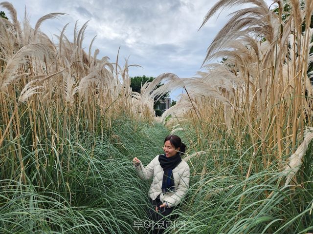 가을이 한창인 지금, 억새 풍경을 즐기려는 연인, 가족, 친구와 함께 온 여행객들의 발길이 이어진다. 완만한 언덕을 따라 올라가면 금세 정상에 닿는데 이곳에서 바라보는 억새풍경이 장관이다.