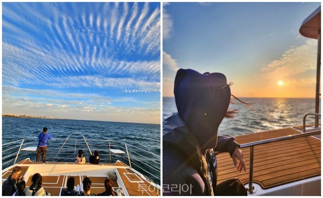 돌고래 서식지로 유명한 대정읍 앞바다로 갔다. 이 곳에서 ‘M1971요트클럽’의 ‘돌고래 에코투어(선셋)’ 프로그램을 이용했다. 요트 투어 시간은 약 70분 정도다.