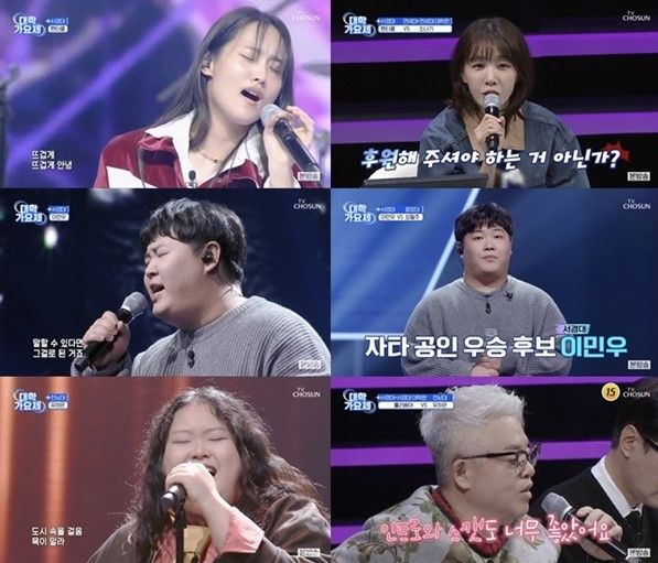 14일 방송된 'TV조선 대학가요제'에서는 준결승전을 향한 마지막 관문, 3라운드 '1:1 데스매치'가 펼쳐졌다. 심사위원 7명 중 더 많은 표를 얻은 팀이 승리하게 되며, 패한 팀은 그대로 탈락하게 되는 중요한 라운드.