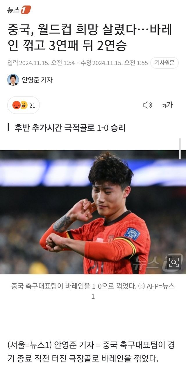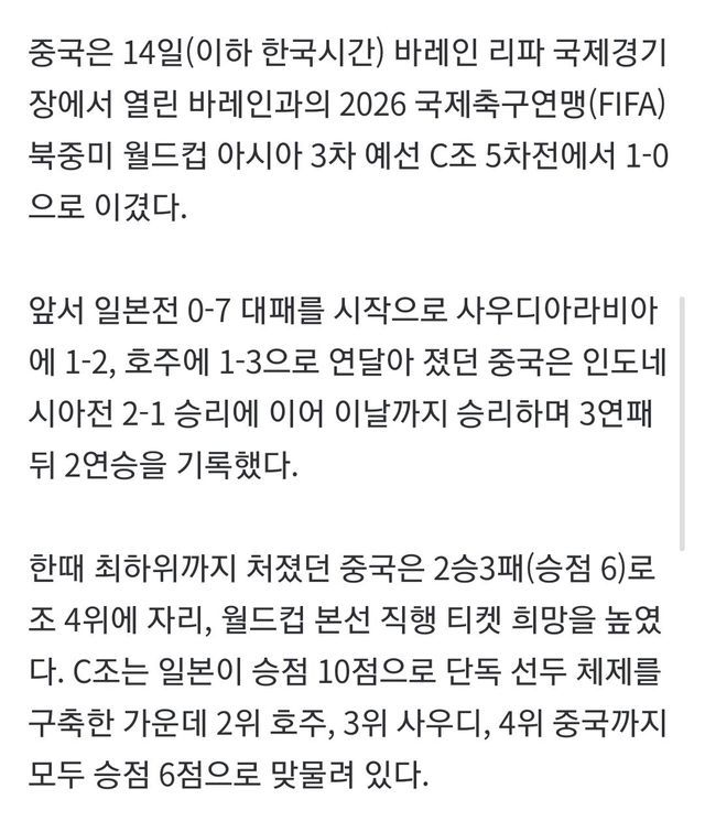 중국이 무려 2게임 연속으로 경기를 이겼다고 한다...ㅋㅋㅋ