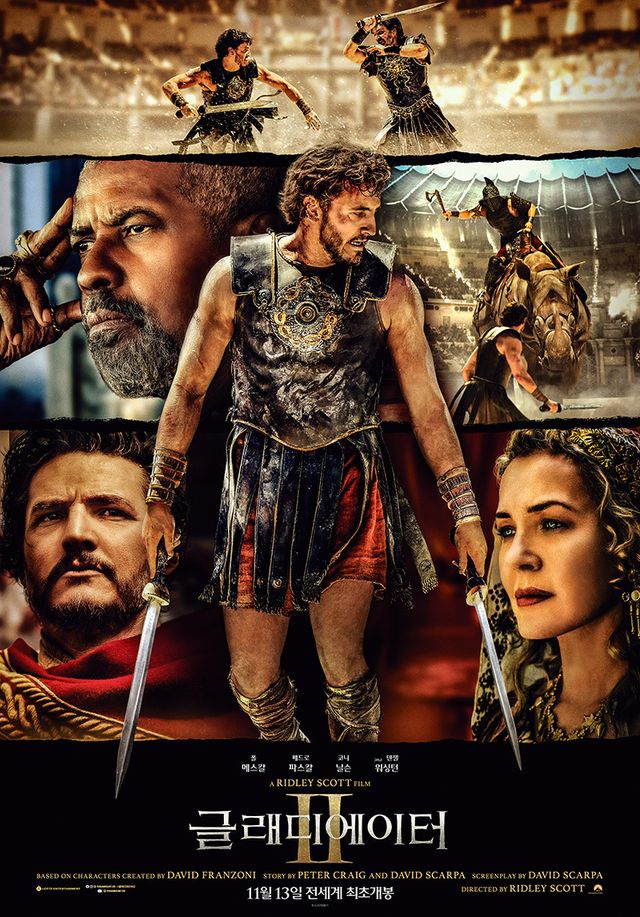 지난 13일 개봉한 ‘글래디에이터Ⅱ’는 막시무스의 죽음으로부터 20여 년 후, 콜로세움에서 로마의 운명을 건 결투를 벌이는 루시우스(폴 메스칼)의 이야기를 그린 영화다. 개봉 첫날 압도적 수치로 박스오피스 1위를 기록 영화는 아찔한 전투와 손에 땀을 쥐게 하는 전개로 관객 호평을 받고 있다.