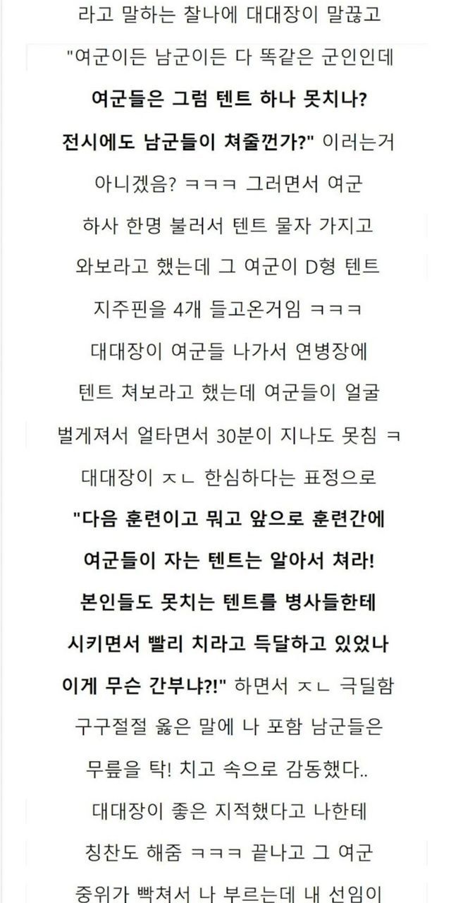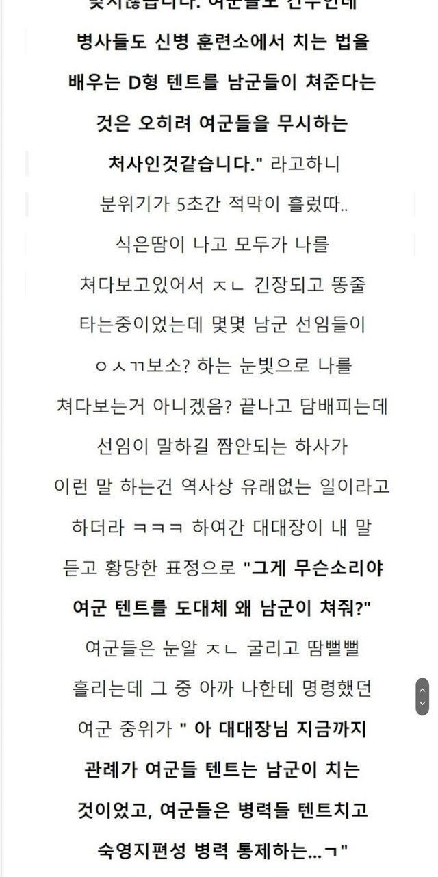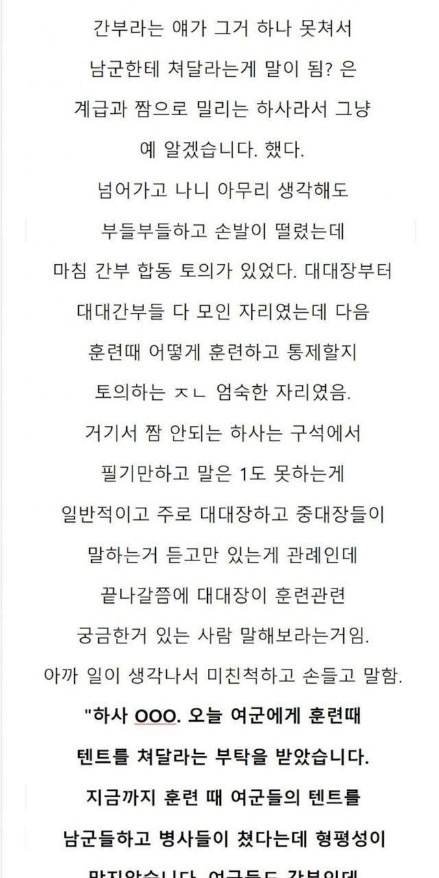 텐트 쳐달라는 여군장교 참교육 썰.