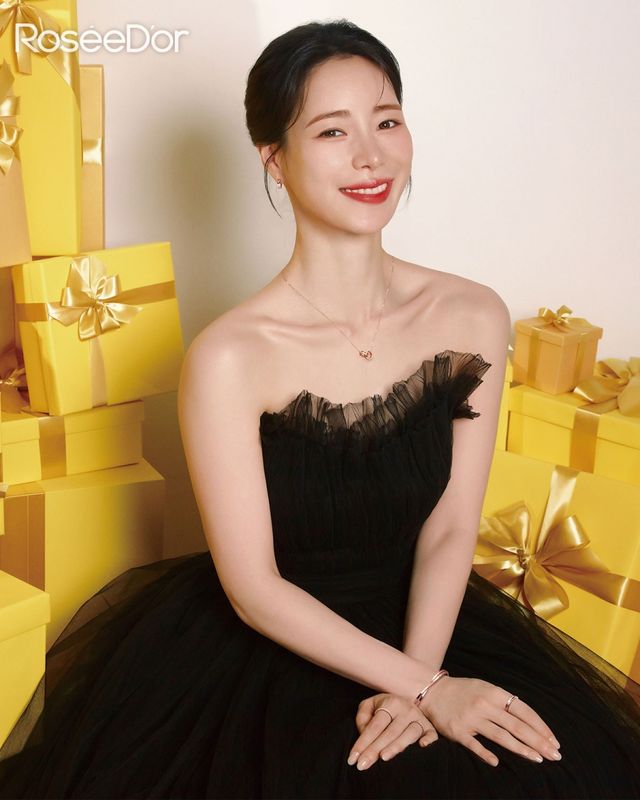 그는 우아하면서도 사랑스러운 미소로 보는 이들의 시선을 사로잡았으며, 로제도르의 ‘듀 위드(Dew With)’ 컬렉션을 포인트 아이템으로 매치해 흠잡을 데 없는 완벽한 스타일링을 완성했다.