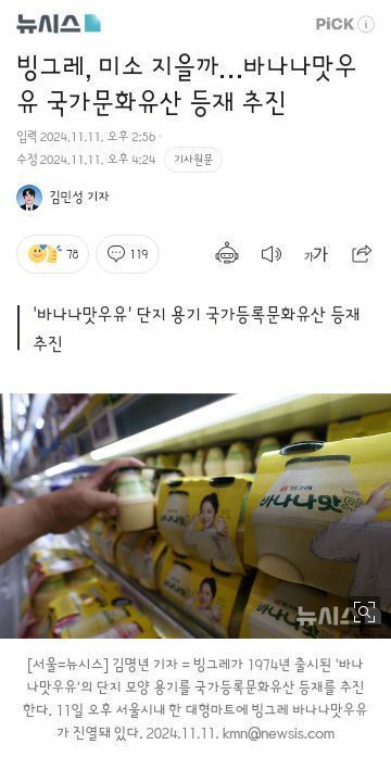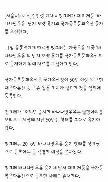 빙그레, 미소 지을까…바나나맛우유 국가문화유산 등재 추진,,