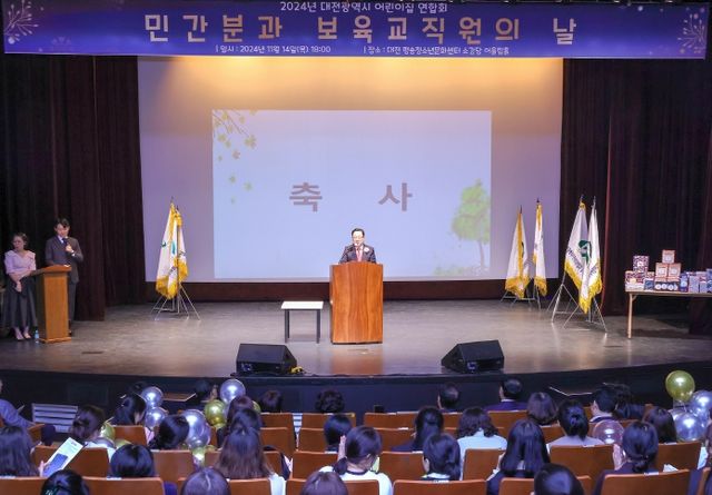 보육인의 자긍심 고취와 화합을 도모하기 위해 대전어린이집연합회 민간분과 주최로 열린 이날 행사에는 이장우 시장을 비롯해 조원휘 대전시의회 의장, 박희조 동구청장, 서철모 서구청장과 대전민간어린이집 보육교직원 등 400여 명이 참석했다.