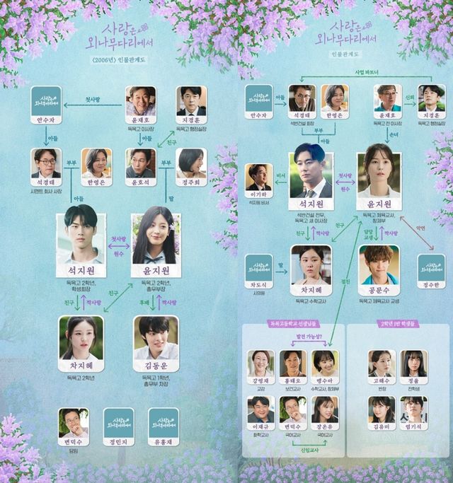 이와 함께 석지원의 아버지 석경태(이병준 분)와 윤지원의 할아버지 윤재호(김갑수 분)의 관계가 시선을 사로잡는다. 두 사람은 질긴 악연을 이어온 주춧돌 같은 인물. 석경태의 어머니이자 윤재호의 첫사랑 안수자를 둘러싼 결투가 두 집안 악연 역사의 시작을 알렸다. 특히 석경태는 독목고를 인수하며 꿈에 그리던 윤가네에 복수를 다짐하는 중이다. 이에 윤지원의 아버지 윤호석(주석태 분)의 친구이자 윤재호가 신뢰하는 독목고의 행정실장 지경훈(이승준 분)이 석경태의 사업 파트너가 된다고 해 얽히고설킨 두 원수 집안의 관계가 어떻게 그려질지 궁금증을 유발한다.