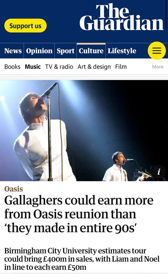 오아시스는 영국에서 국민 밴드로 불리며, 오랜 기간 동안 많은 사랑을 받아왔다. 그러나 이번 재결합이 진정한 화해에서 비롯된 것인지, 아니면 상업적 목적이 우선된 것인지는 팬들 사이에서 의견이 분분하다.