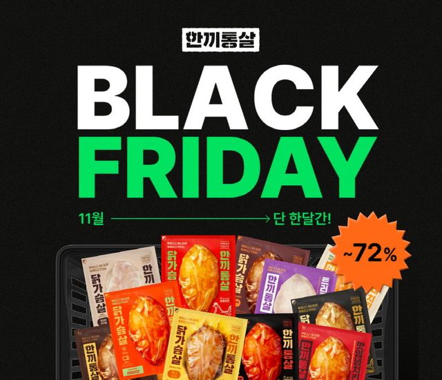 누적 판매량 7천만 개를 돌파한 한끼통살이 11월 한 달간 연중 최대 규모의 블랙프라이데이 프로모션을 진행한다.