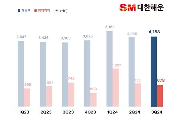 그러면서 올해 3분기의 경우 영업활동 강화로 전년대비 매출액은 25% 올랐지만, 선박 정기 입거수리 진행과 영업활동에 따른 용선료 증가의 영향으로 영업이익은 9% 하락했다고 덧붙였다.