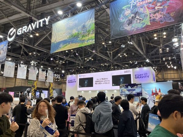 그라비티는 이번 지스타에서 벡스코 제1전시장에 50부스 규모로 참가했다. 해당 부스에서는 다수의 신작을 포함한 총 17종을 선보이고, 시연존을 마련했다. 그라비티 부스는 제1전시관 입구에 위치해 뛰어난 접근성과 부스 내부가 한눈에 보이는 탁 트인 디자인으로 사람들의 시선을 사로잡으며 첫날부터 북새통이 이뤘다.