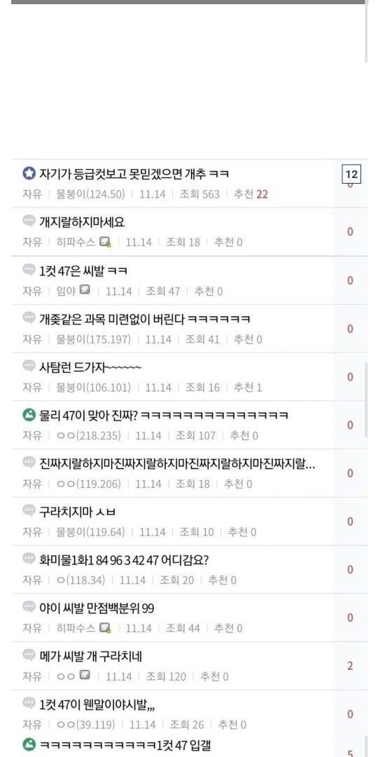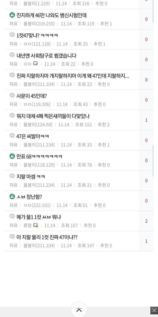 오히려 작년보다 1컷 더 올라서 47점됨..