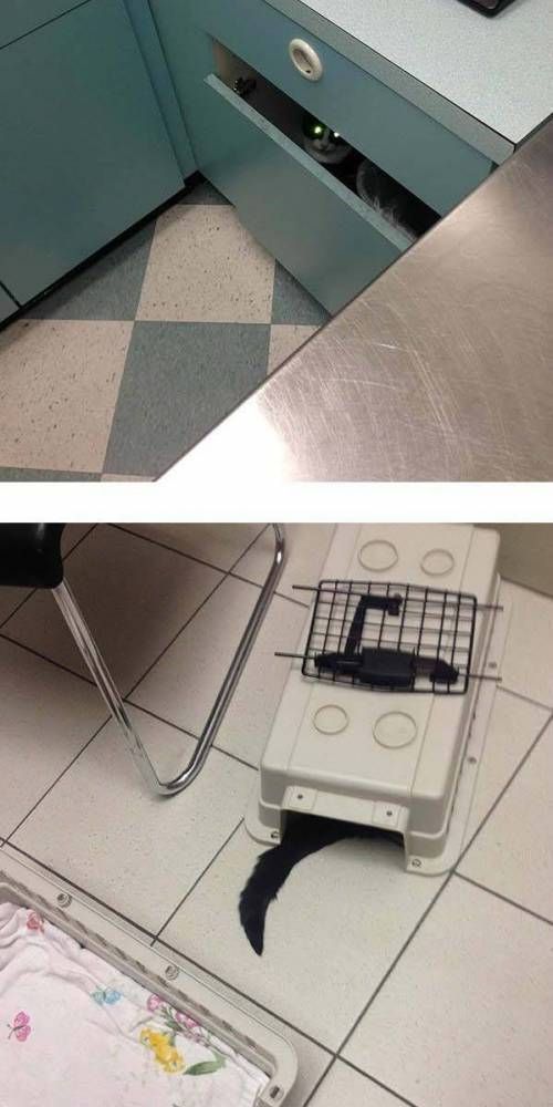 수의사가 무서워 숨어버린 고양이들.jpg,,