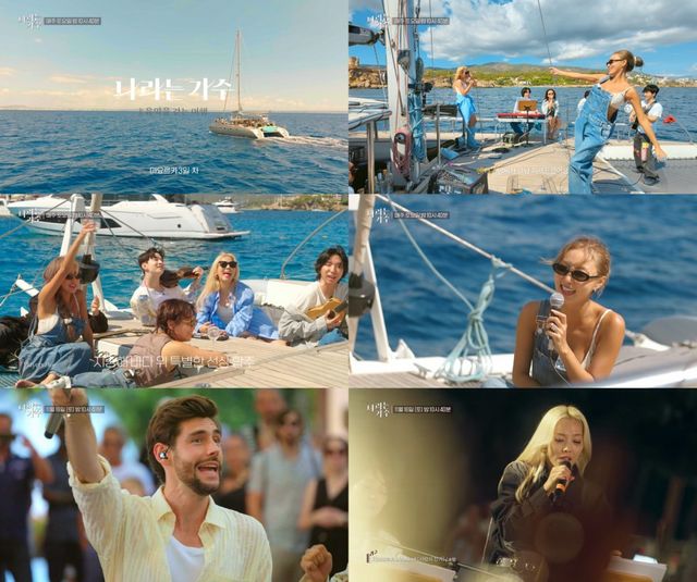 이날 화사, 소향, 헨리, 안신애, 구름, 자이로는 지중해 바다 위 특별한 선상 합주에 나선다. 각종 악기와 장비를 요트로 옮겨온 이들은 분위기에 녹아든 다채로운 라이브 무대로 시청자들의 눈과 귀를 사로잡을 예정이다.