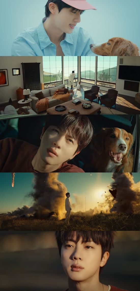 이날 공개된 뮤직비디오는 지구가 멸망한다는 극단적인 상황에서도 일상의 소소한 행복을 누리고 사랑을 나누는 진의 행복을 다뤘다. 두렵고 공포로 가득한 멸망을 앞둔 상황이지만 진은 사랑하는 반려견과 영화를 보고 해변가를 뛰어놀며 여느 일상과 다름 없는 하루를 보낸다. 그의 얼굴에 번진 평온한 미소, 따뜻한 눈빛이 보는 이들에게 안정감을 선사한다.