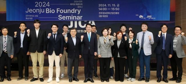 시와 전주시정연구원은 15일 전주정보문화산업진흥원에서 바이오산업의 미래로 불리는 바이오 파운드리의 성공사례를 공유하고, 전문가들과 함께 바이오산업 육성 정책을 모색하기 위한 ‘전주 바이오 파운드리 세미나’를 개최했다.