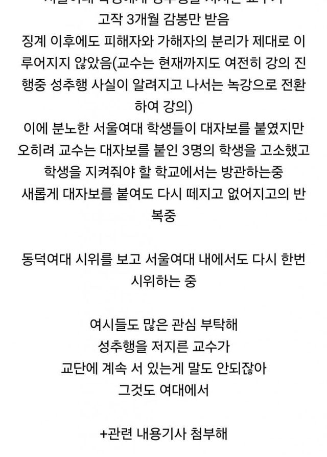 근데 이번에 서울여대 교수 성추행 무혐의 뜸 ㅋㅋㅋㅋㅋㅋㅋ