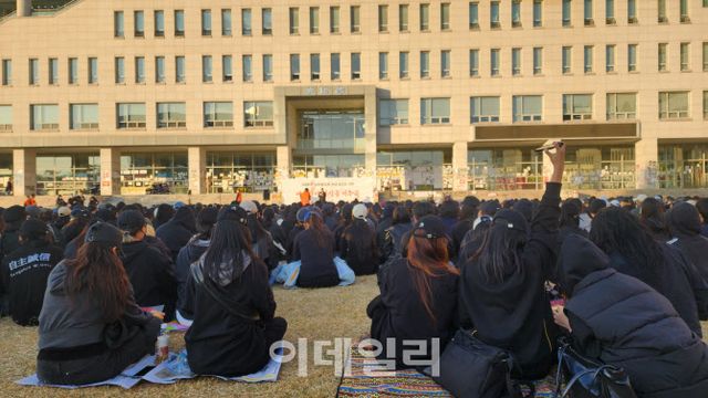 시위가 예정된 오후 4시가 다가오자 재학(졸업)생들이 반대 의사를 뜻하는 검정색 옷을 입은 채로 하나둘 캠퍼스 내 성신관 앞 잔디밭에 모여들었다. 총학 측에 따르면 이번 시위에는 재학생과 졸업생 등 총 1200여 명이 참가했다.