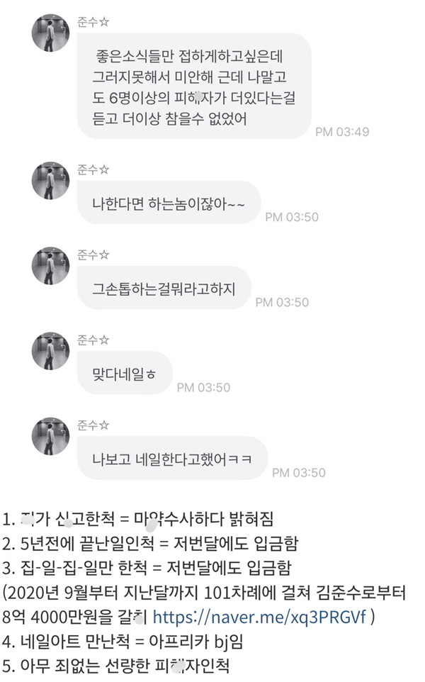 "네일아트 만났다고? 아프리카 BJ잖아"...BJ와 잠자리 협박 해명하자 거짓말 싹 다 들통난 김준수