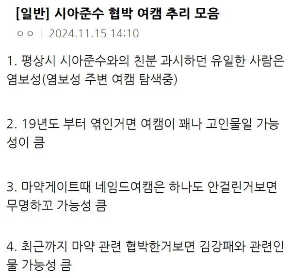 네티즌들은 '시아준수 협박 여캠 추리 모음'이라는 글을 올렸다.