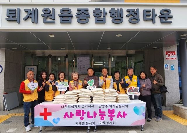 [와이뉴스] 대한적십자사 경기지사 남양주 퇴계원 봉사회와 마루봉사회는 15일, 소속 회원 및 퇴계원읍 관계자 등 10여 명이 참석한 가운데 찹쌀 36포(5kg) 나눔 행사를 진행했다.