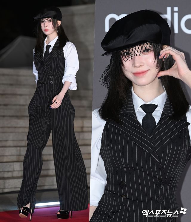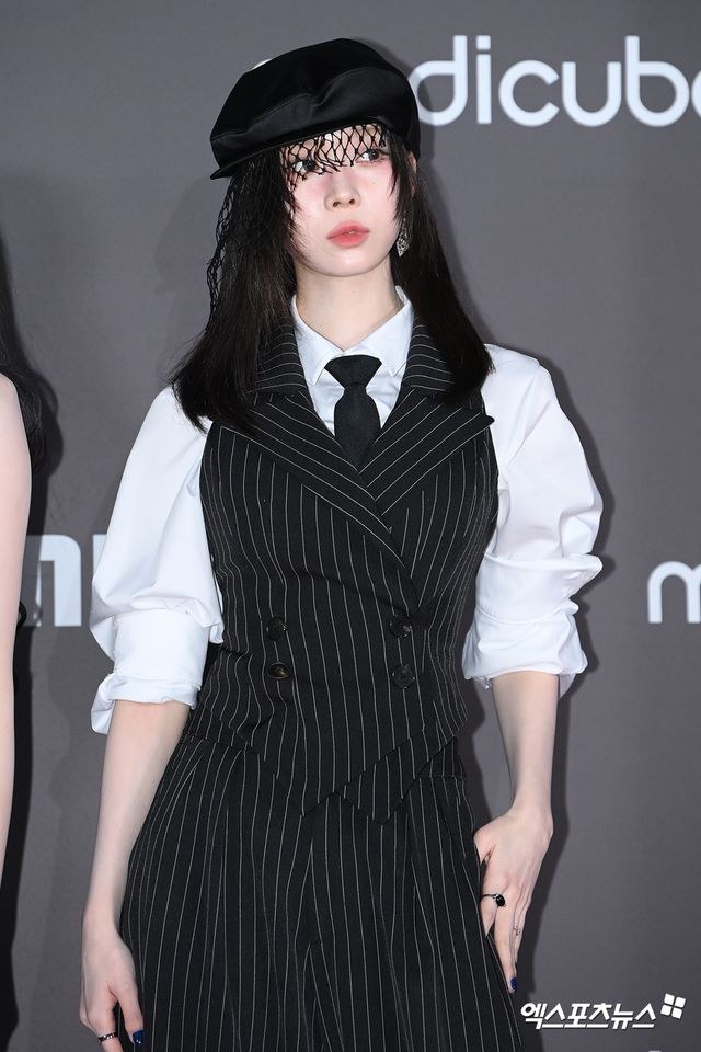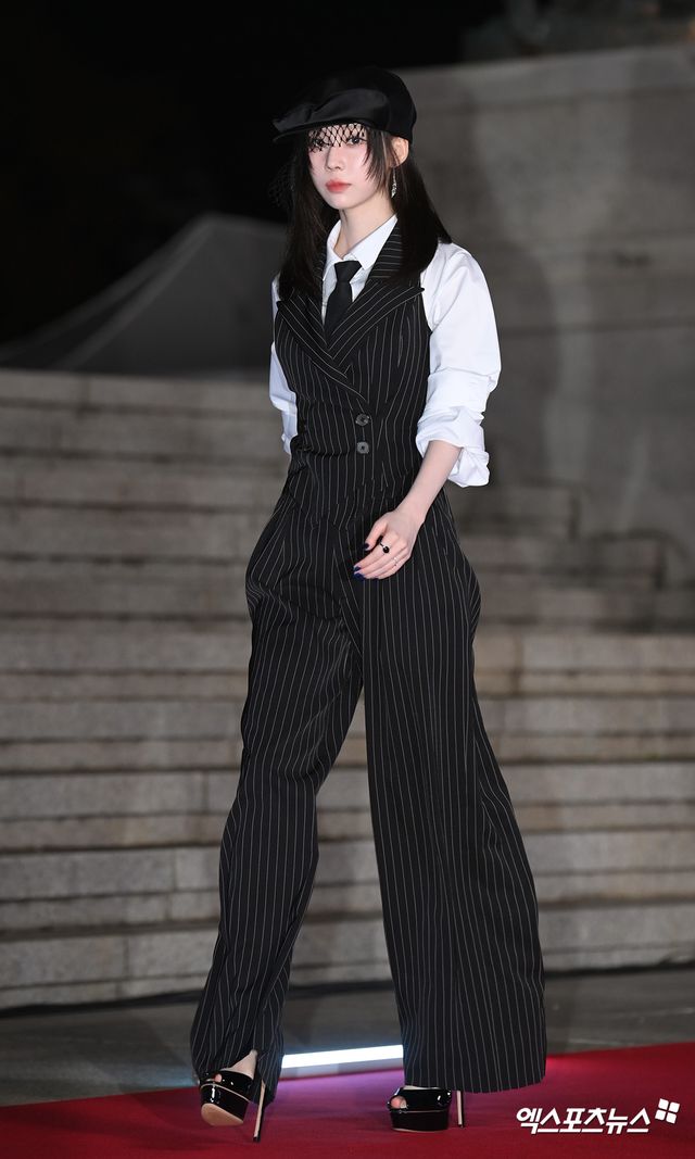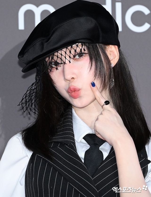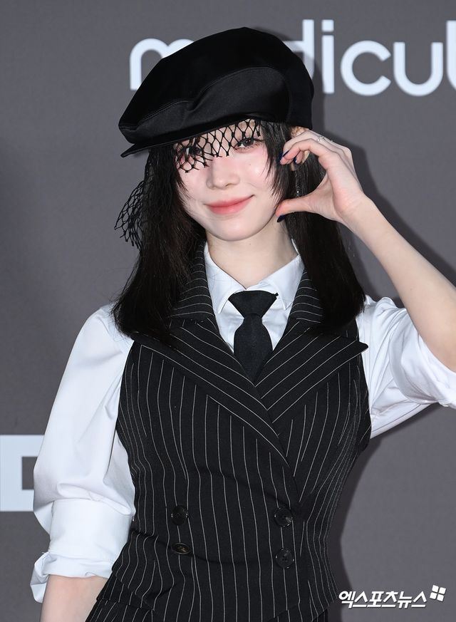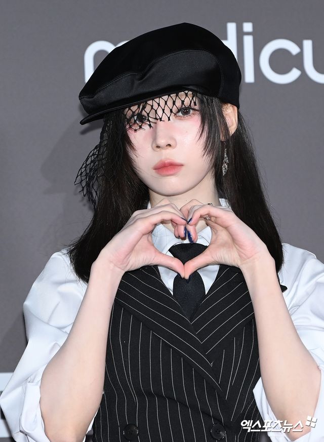 이날 행사에 참석한 에스파 윈터가 포토타임을 갖고 있다.