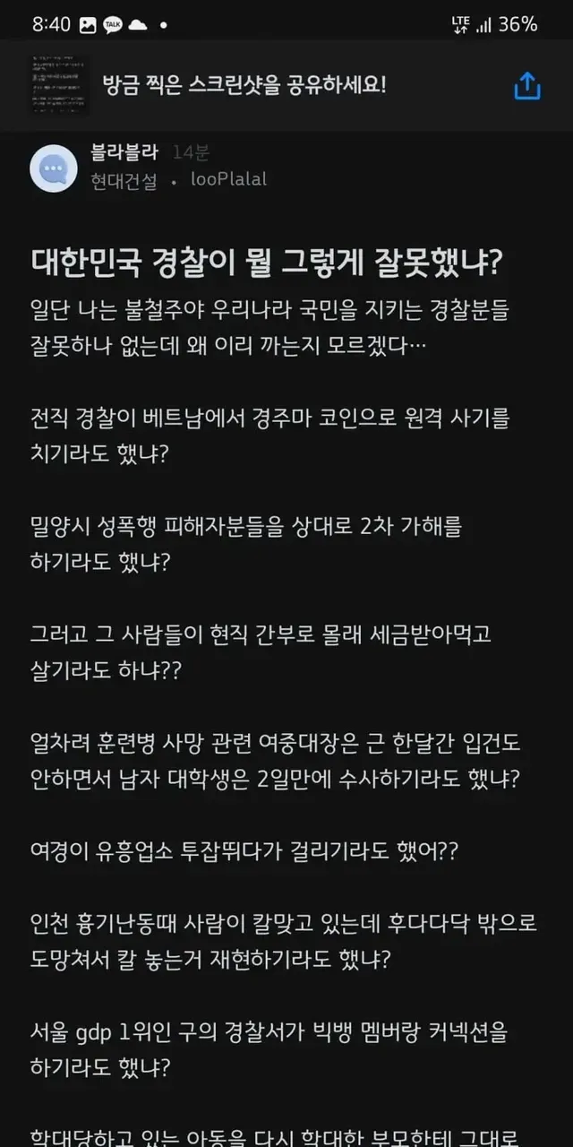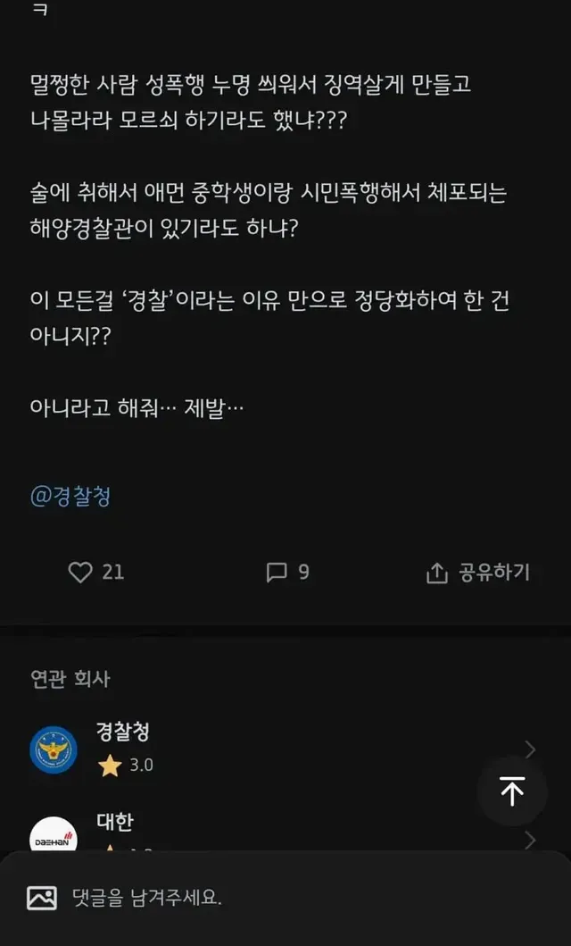 물론 전체에서 소수의 견찰들이 존재하겠지만 그 견찰들을 자체 제거할 노력을 안 하니..