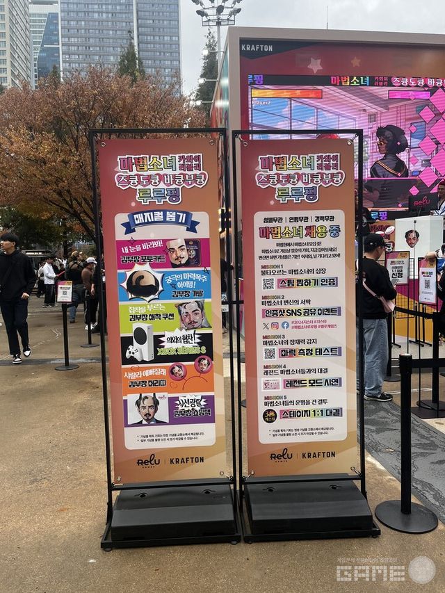'마법소녀 카와이 러블리 즈큥도큥 바큥부큥 루루핑'는 크래프톤 산하의 딥러닝/AI 전문 스튜디오 'ReLU Games'에서 제작한 병맛게임이다. 제목부터가 심상치 않은데 게임 내용은 더욱 심상치 않다. 대부분의 게임이 마이크 인식을 활용하고 있으며, 주어진 문장을 읽으면 AI가 이것을 점수화한다. 게임 컨셉이 컨셉인만큼 화려하고 눈에띄는 부스를 자랑한다. 뽑기를 통해 김부장 포토카드, 김부장 가발, 김부장 머리띠, 김부장 쇼핑백을 받을 수 있고 운이 좋으면 XBOX도 받을 수 있다고.