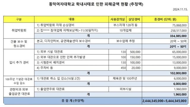 작년 동덕여대에서 청담동에
