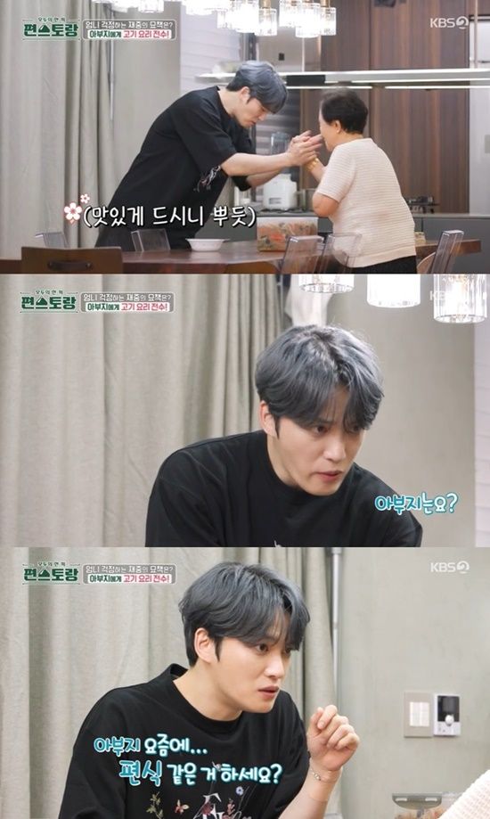 김재중은 어머니에게 "아버지 요즘도 편식하시냐"고 물었고, 어머니는 "(습관이) 어디 가겠냐"고 얘기했다.