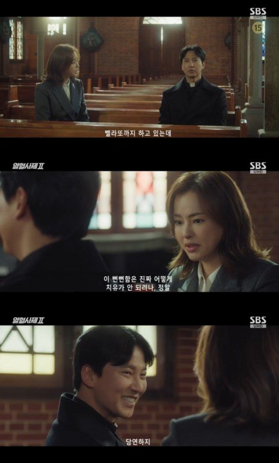 15일 방송된 SBS 금토드라마 '열혈사제2' 3회에서는 다발성 경화증 진단을 받은 김해일(김남길 분)을 걱정하는 박경선(이하늬)의 모습이 그려졌다.