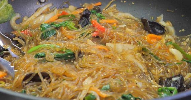 먼저, 당면과 건목이버섯을 미지근한 물에 30분 이상 불린 후, 당근과 양파를 채 썰고 청양고추와 홍고추는 씨를 제거해 채 썬다. 그런 다음 팬에 물, 진간장, 식용유, 흑설탕을 넣고 강불에서 끓인 뒤, 불린 당면과 다진 마늘, 순후추, 굴소스를 넣고 물이 자작해질 때까지 저어가며 끓인다.