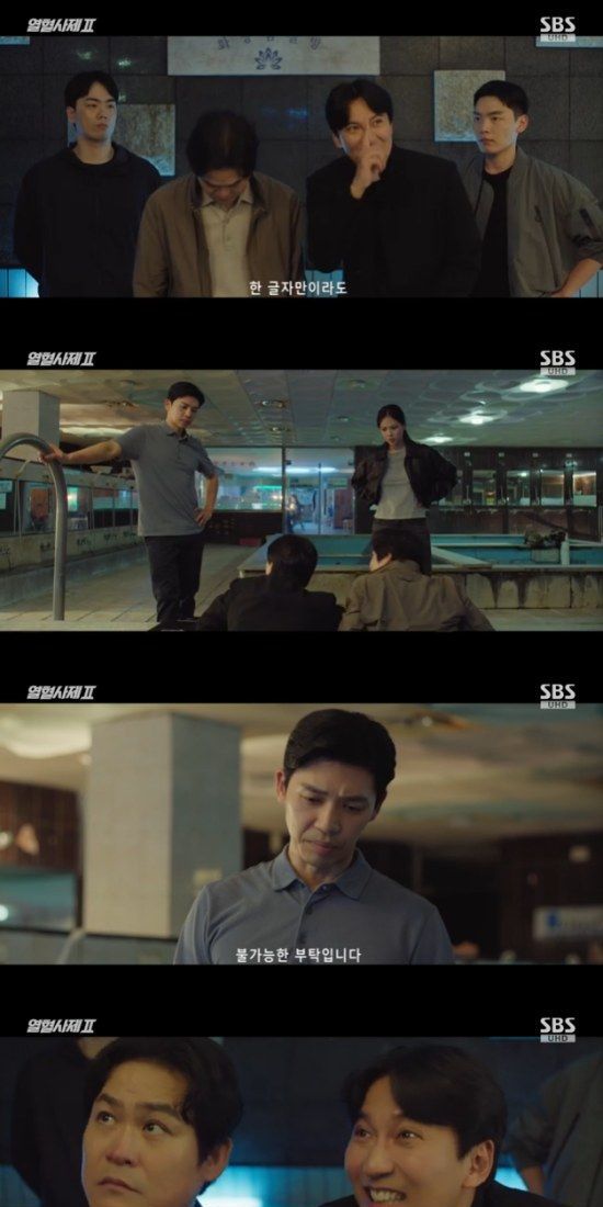 그러자 구대영은 "우리가 잡았잖아. 폭망은 아니지"라고 했고, 김해일도 "불장어사 속한 마약 조직 명과 보스가 누구냐. 한글자만이라고..."라고 부탁했다.