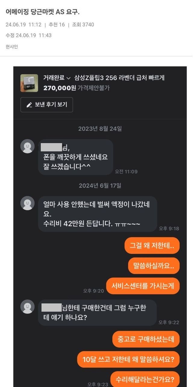 보배] 어메이징 당근마켓 AS 요구.