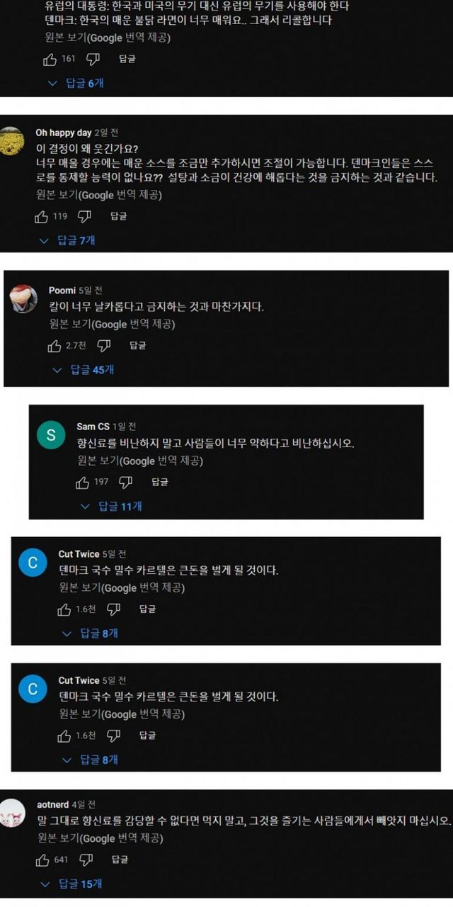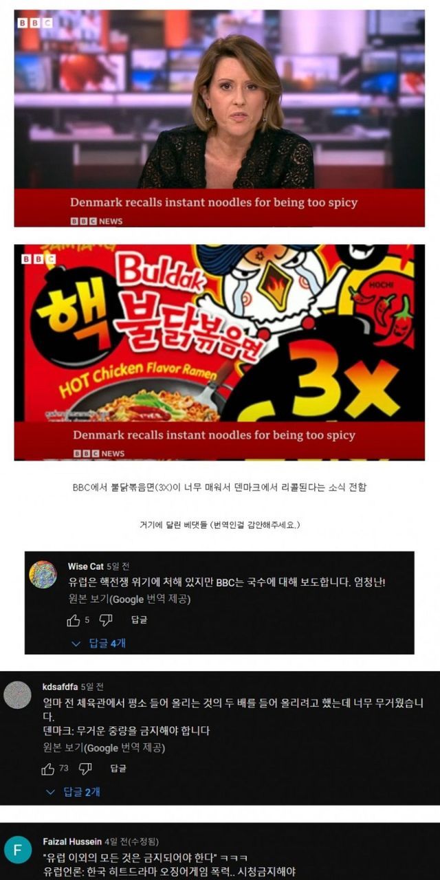 불닭 너무 매워 리콜하는 덴마크, 세계인 반응.