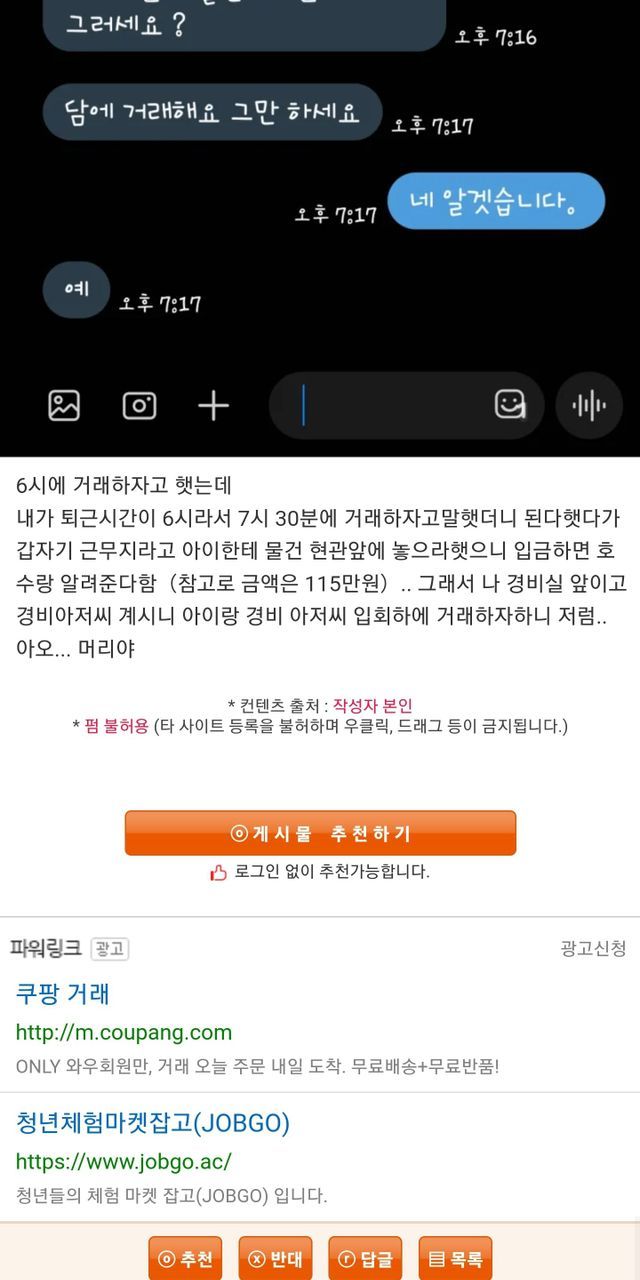 근처라고 직접 가지러간다하면 택배이야기하고 사기치는넘때문에 장터게시판이 사라졌죠