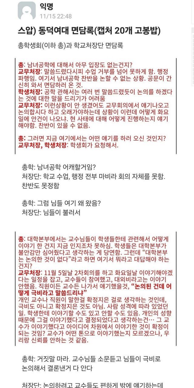 스압)동덕여대 총학 처장단 면담