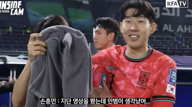 이날 A매치 50번째 골을 넣은 손흥민은 경기 후 황인범을 향해 “와, 진짜 오늘 지단, 지단 진짜”라며 감탄했다. 이어 “지단 영상을 봤는데, 인범이 생각이 났다”며 엄지를 세웠다. 옆에서 주장의 극찬을 들은 황인범은 얼굴을 가렸다.