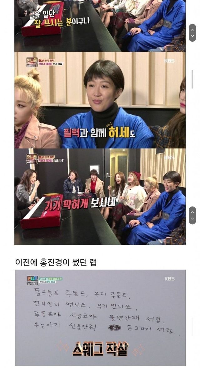 작사가 김이나가 극찬한 홍진경 랩 가사