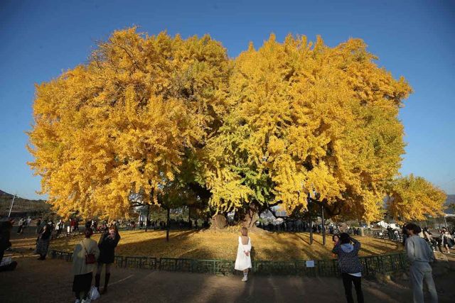 단풍이 올해 유독 늦어지면서 원주 은행나무에 관심이 쏠리고 있다. 기상청은 여름 더위가 길어지고 가을이 짧아지면서 단풍이 점차 늦어지고 있다고 설명했다.