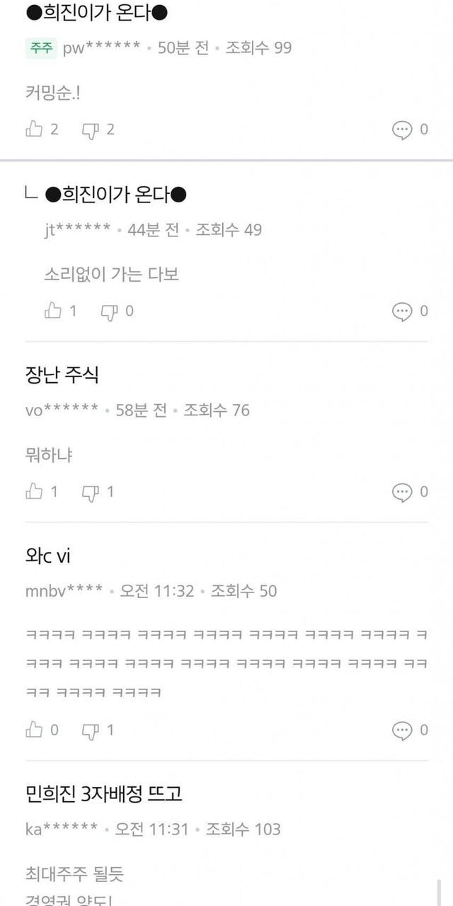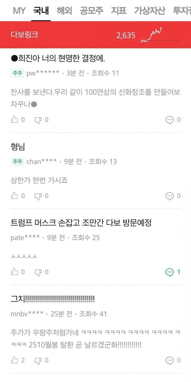 민희진 온다고 주가상승중(?)인 다보링크 종토방..
