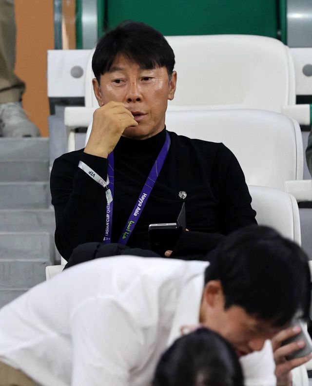 인도네시아 축구대표팀 신태용 감독이 지난 1월 카타르 알라이얀 에듀케이션 시티 스타디움에서 열린 2023 아시아축구연맹(AFC) 카타르 아시안컵 16강전 대한민국과 사우디아라비아의 경기에서 관중석에 앉아 그라운드를 바라보고 있다. / 뉴스1