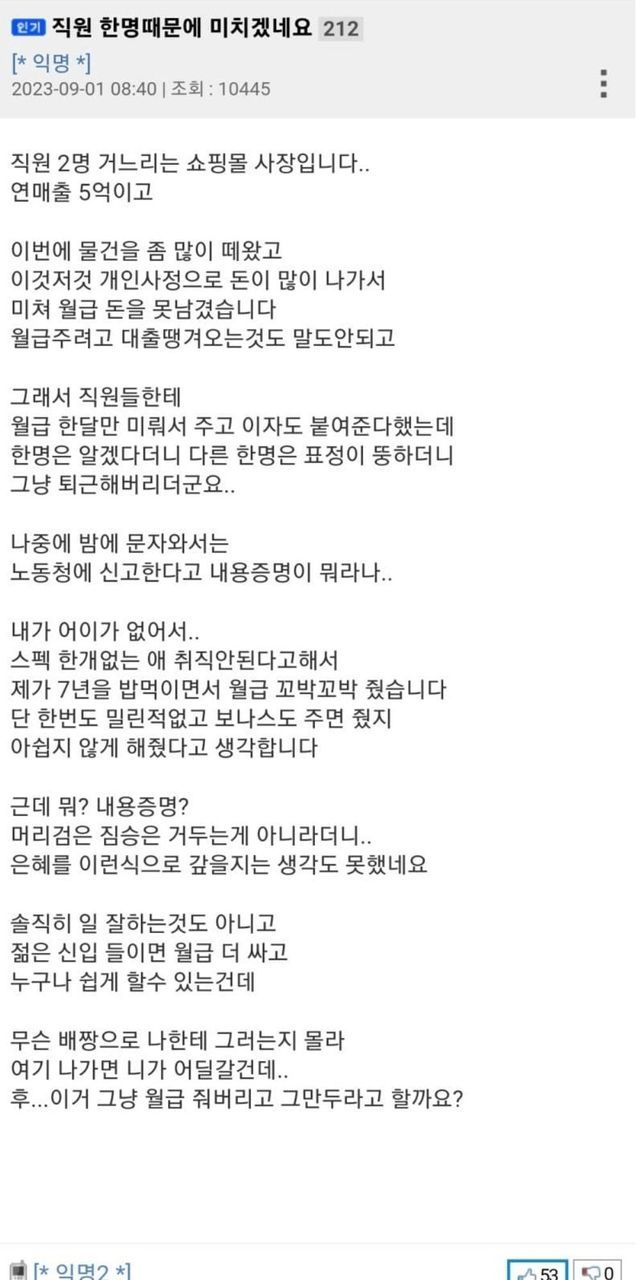 제가 왜 점장보다 더 적게 월급을 받나요?