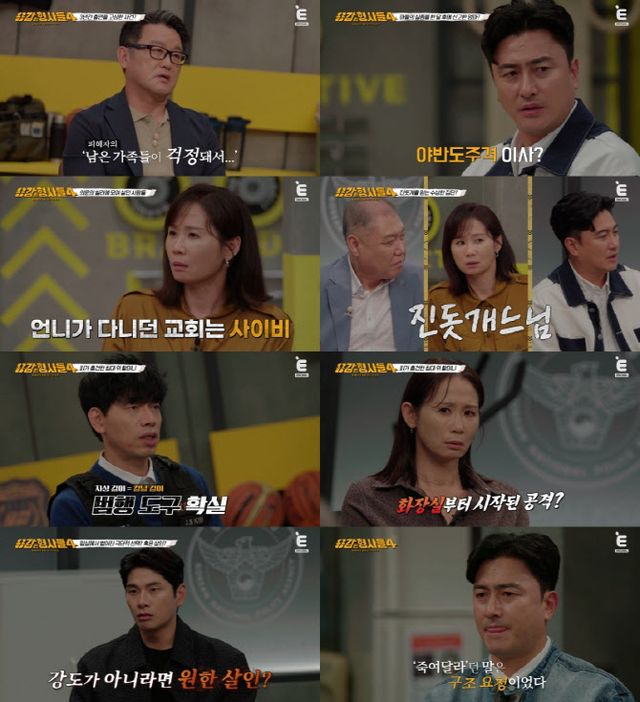 지난 15일 방송된 티캐스트 E채널 ‘용감한 형사들4’(연출 이지선) 10회에는 김민성 전 경감과 과학수사대(KCSI) 윤외출 전 경무관, 김진수 경감이 출연해 직접 해결한 수사 일지를 공개했다.