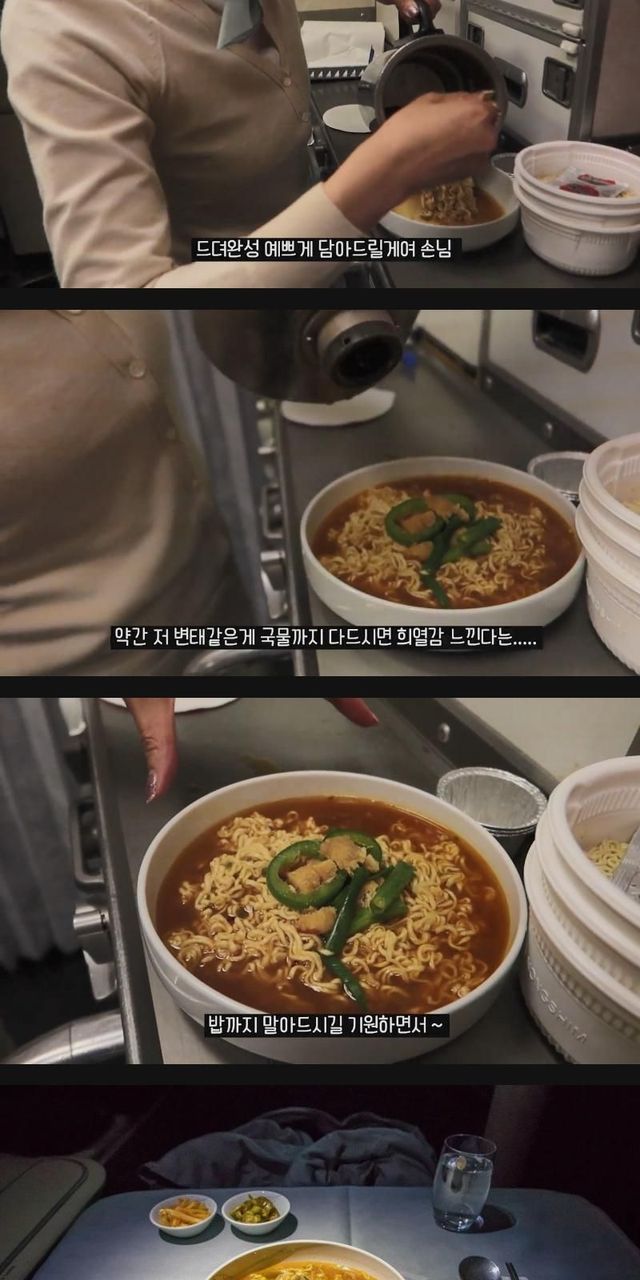약간 변태같다는 ㄷ항공 비즈니스석 라면 조리하는 승무원.