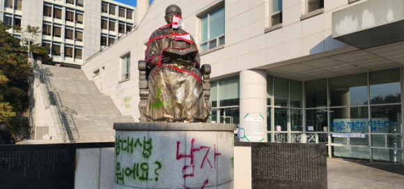 성신여대 학생들은 동덕여대 사례와 마찬가지로 다양한 방법으로 항의 활동을 이어가고 있습니다.