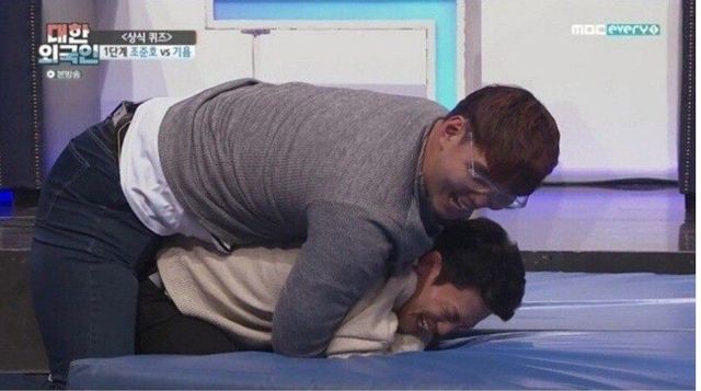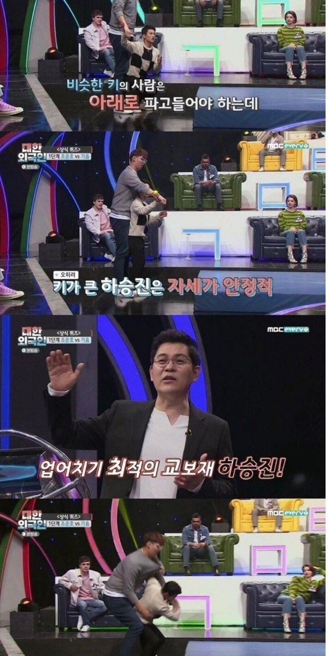 221cm 업어치기 시도하는 175cm.