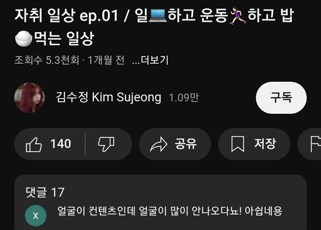 업로드주기 40일정도 되는 솔직히 흔한 브이로그 유튜브