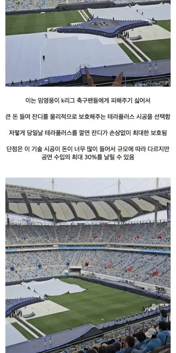 잔디 훼손을 피하느라 관객석과 멀어지니